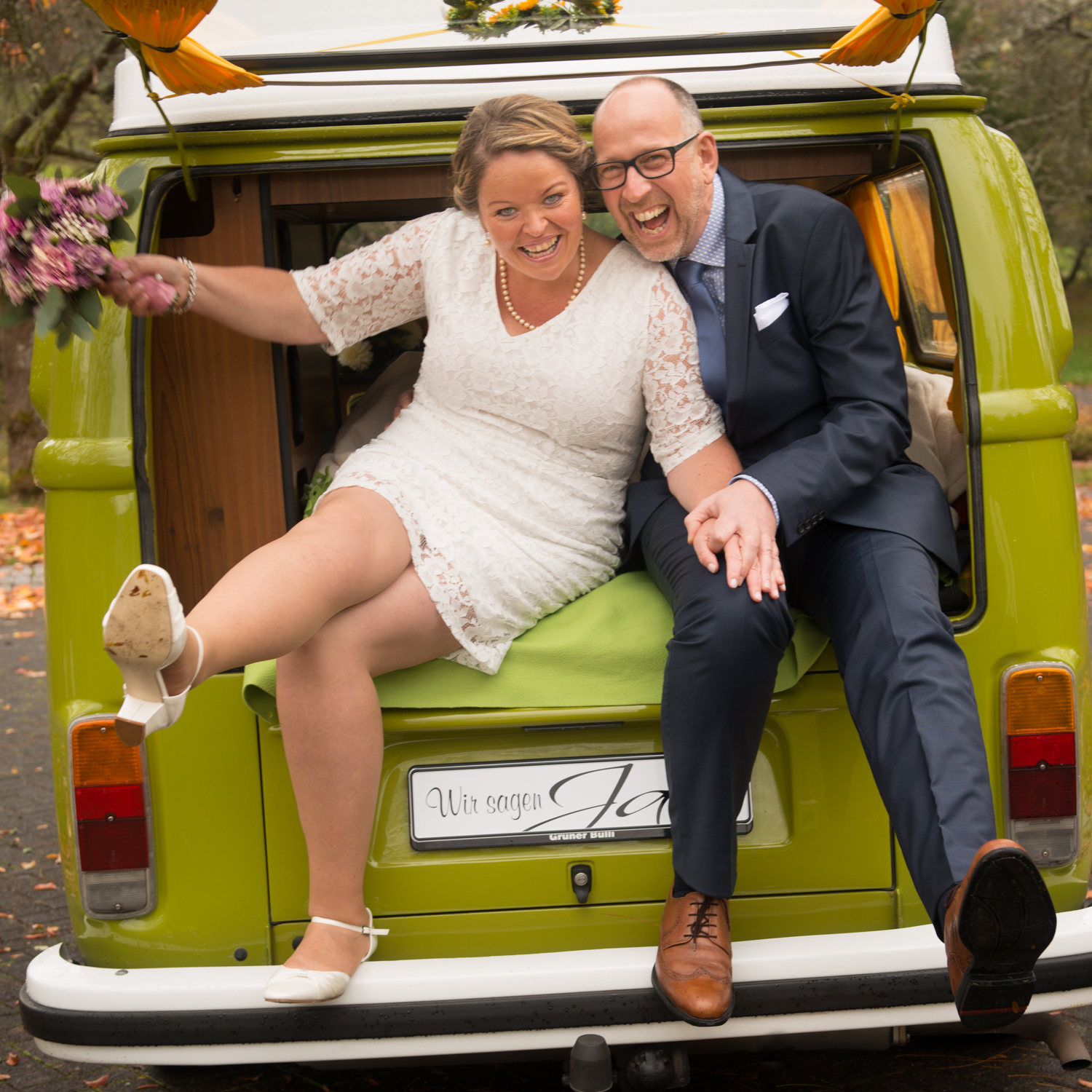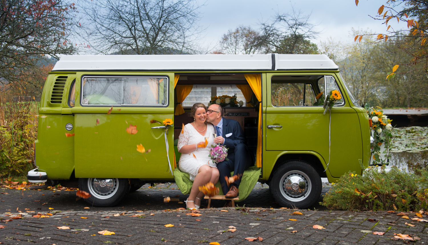 Brautpaar mit Bulli90 Bilder |